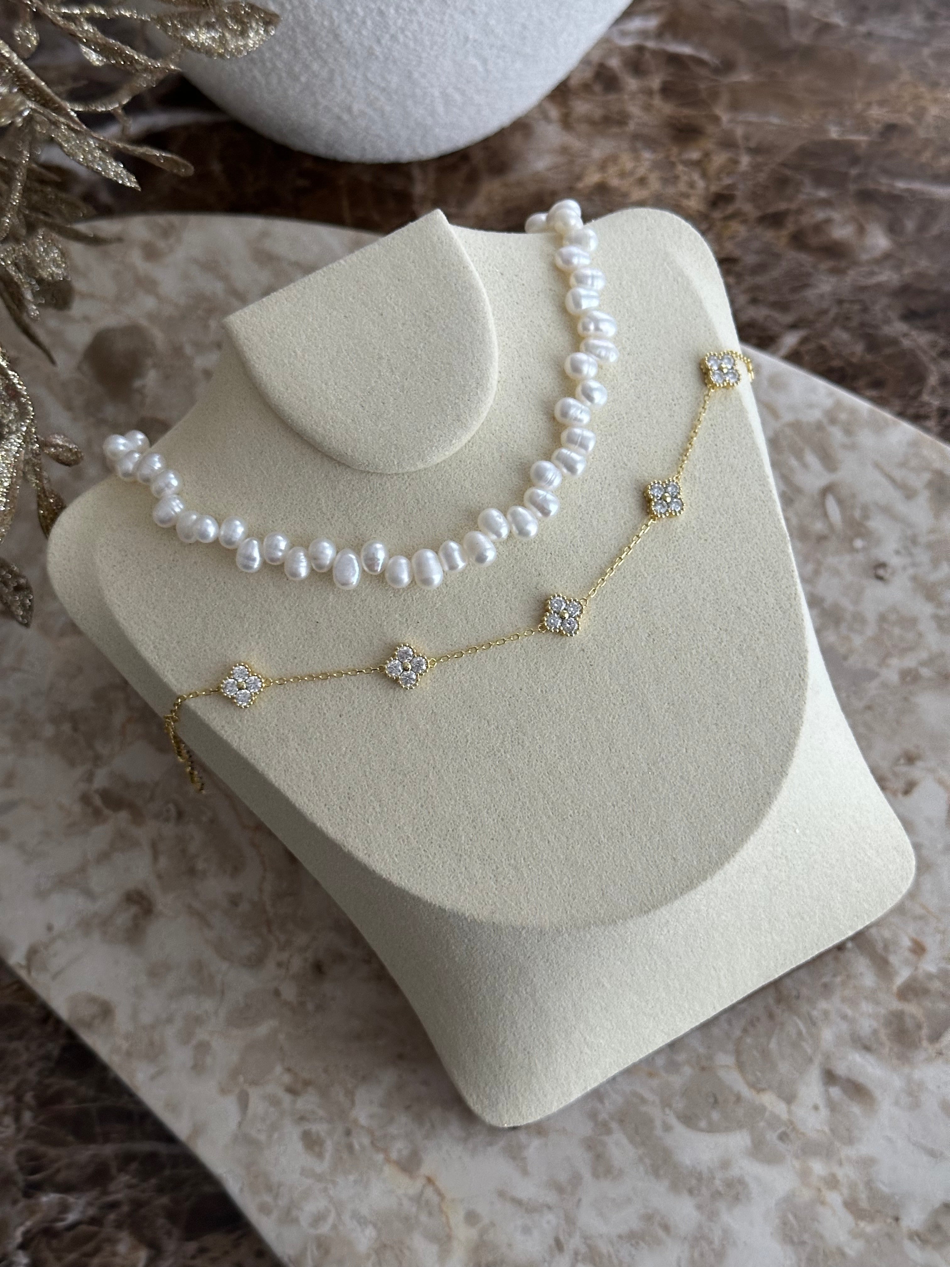 Wunderschöne Halskette aus Edelstahl mit einer 14 K Vergoldung und echten Süß Wasser Perlen