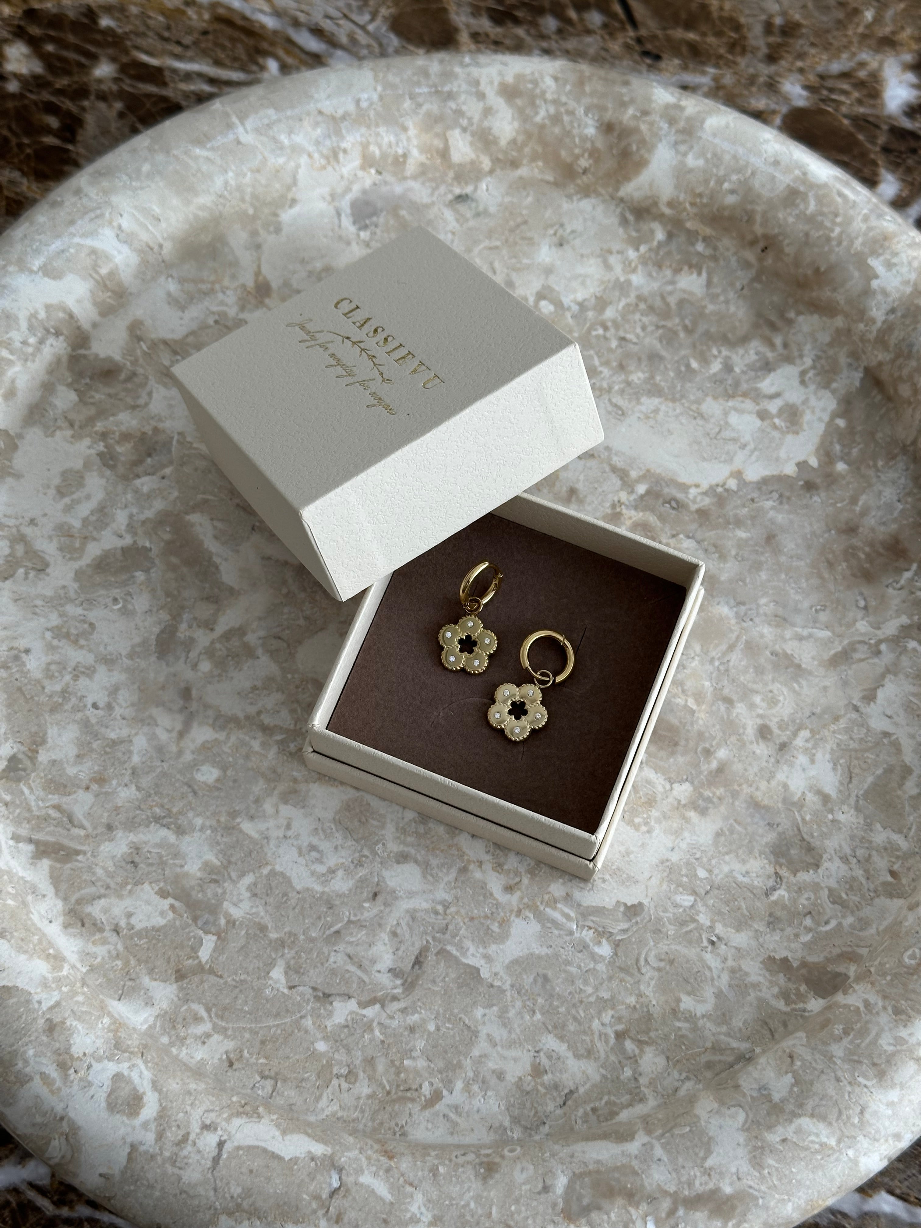 Unsere eleganten Ohrringe vereinen zeitloses Design mit hochwertiger Verarbeitung – perfekt für jeden Anlass. Gefertigt aus robustem Edelstahl und veredelt mit einer 14 Karat Vergoldung, überzeugen sie durch edlen Glanz und besondere Langlebigkeit.