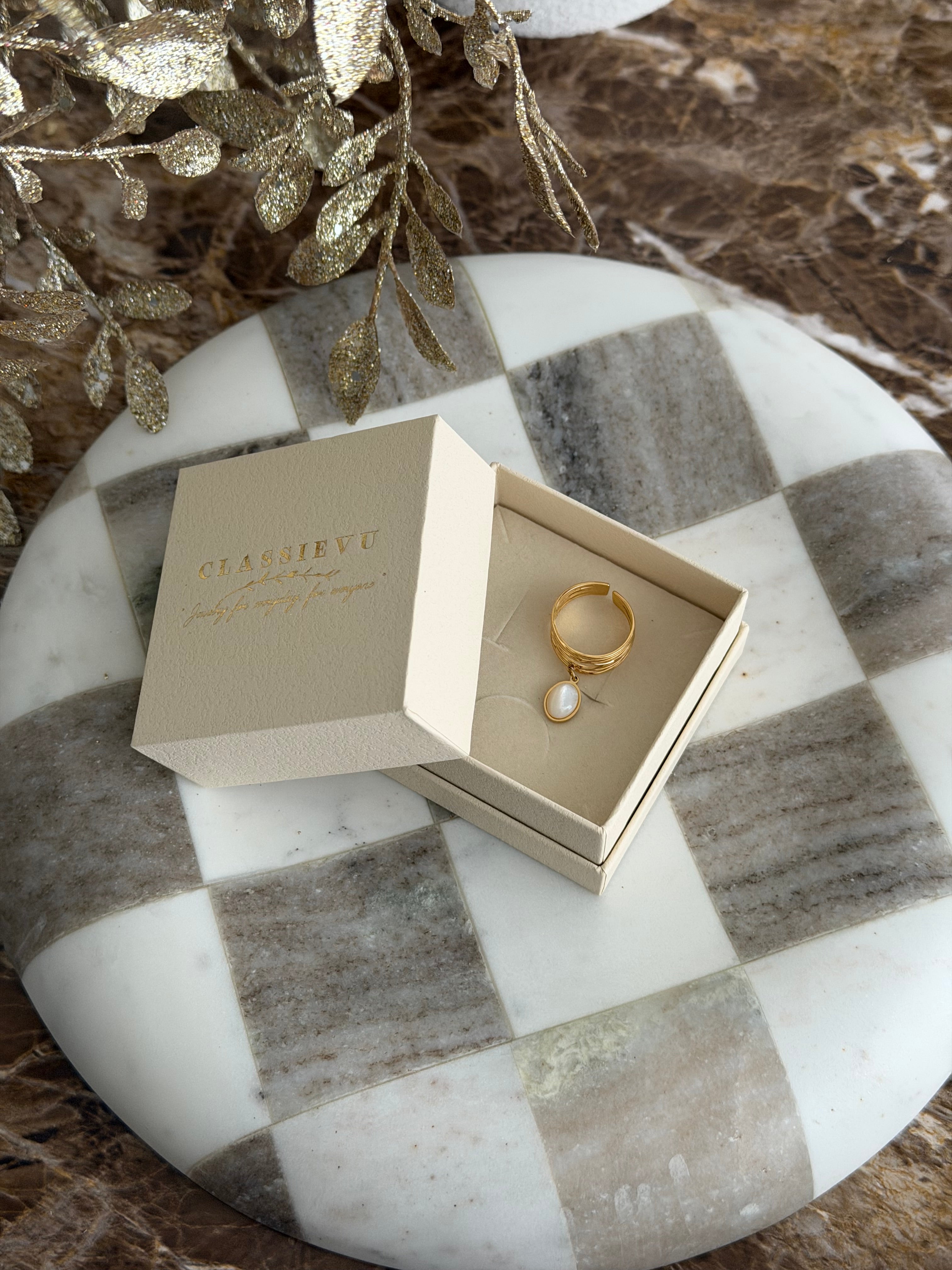 The ring is hypoallergenic, water-resistant, and ideal for everyday wear – whether as a subtle statement piece or an elegant accessory for special occasions. A versatile piece of jewelry that perfectly combines timeless elegance and modern functionality.