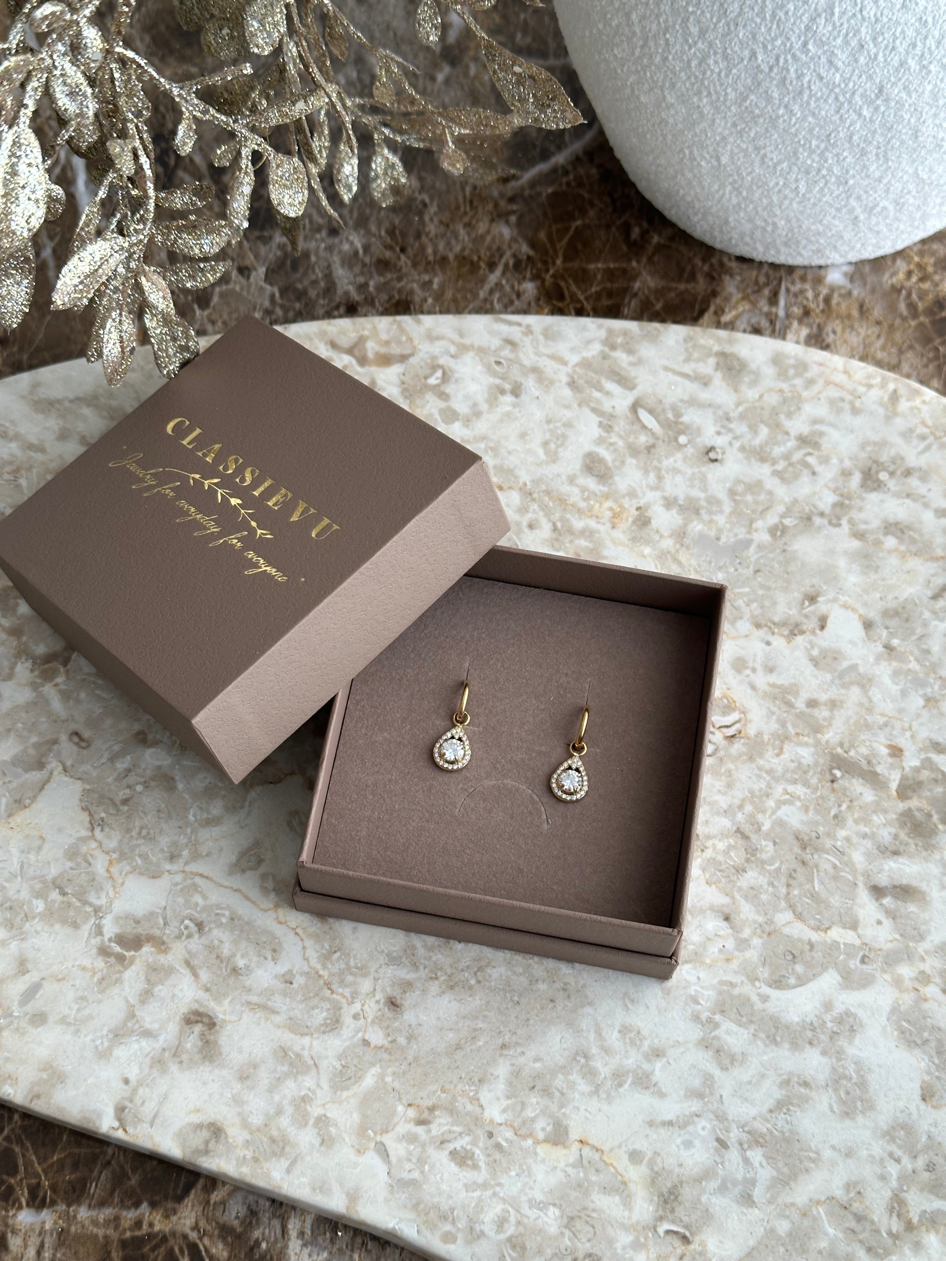 Unsere eleganten Ohrringe vereinen zeitloses Design mit hochwertiger Verarbeitung – perfekt für jeden Anlass. Gefertigt aus robustem Edelstahl und veredelt mit einer 14 Karat Vergoldung, überzeugen sie durch edlen Glanz und besondere Langlebigkeit.