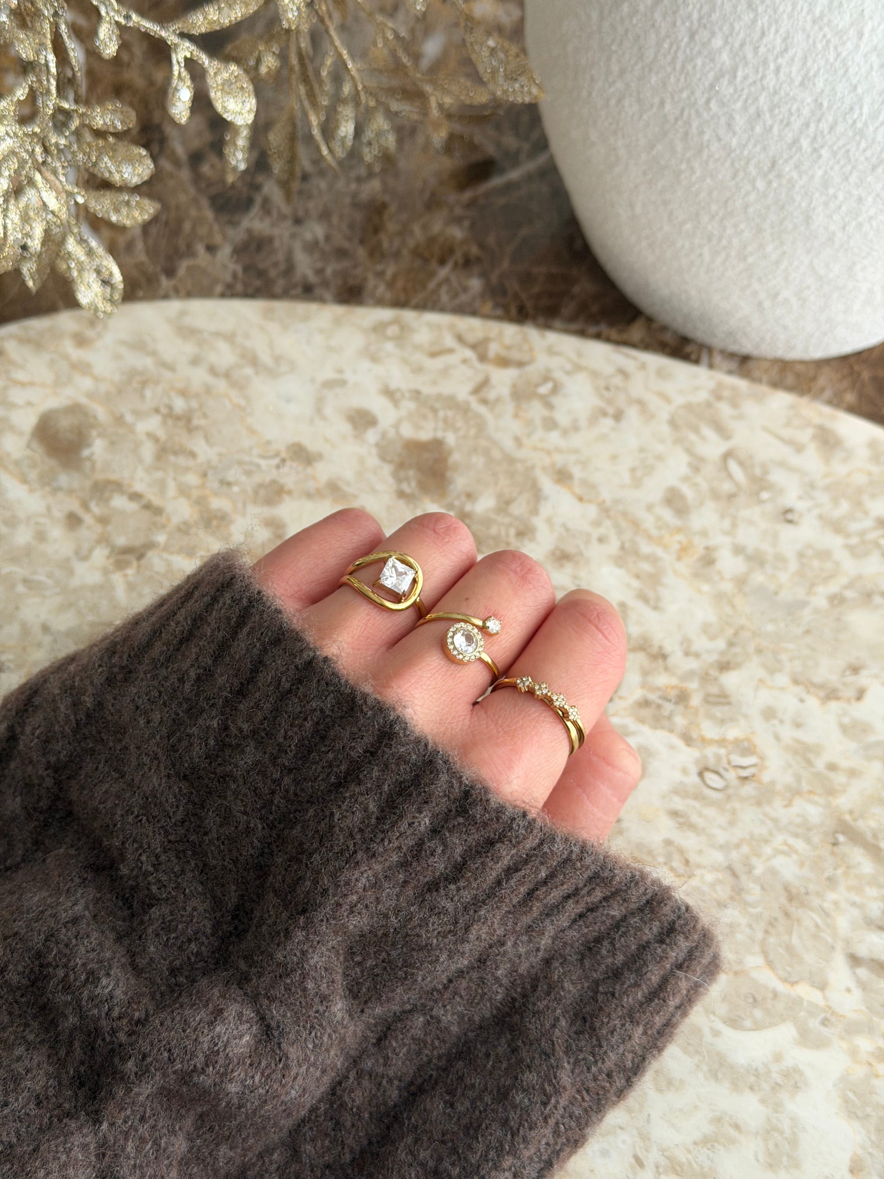 Wunderschöner verstellbarer Ring aus Edelstahl mit einer 14 K Vergoldung.